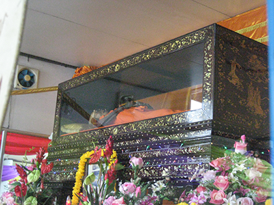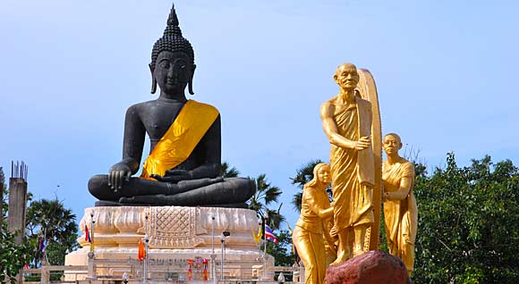อนึ่ง เราได้ฟังอานิสงค์สร้างพระพุทธรูปว่าผู้ใดสร้าง รูปพระพุทธเจ้าจะเป็นองค์เล็กเท่าต้นคาก็ดี ใหญ่กว่าต้นคาก็ดี ผู้นั้นจะได้เป็นพรหม เป็นอินทร์หมื่นชาติแสนชาติ จะไม่เป็นผู้ตกต่ำเลยจนตราบเท่าเข้าสู่พระนิพพาน และถ้าสร้างพระพุทธรูปด้วยทองคำผู้นั้นจะได้ตรัสรู้ เป็นองค์พระสัมมาสัมพุทธเจ้า เราได้ฟังเช่นนั้นก็เกิดศรัทธาเลื่อมใส สร้างรูปพระพุทธองค์เสียมากมายหลายล้านหลายโกฏิ เราได้สร้างไว้แล้ว นี้ เป็นปณิธานความมุ่งมั่นที่จะสืบต่ออายุพระศาสนา ของหลวงพ่อขอม ( อนิโชภิกขุ )